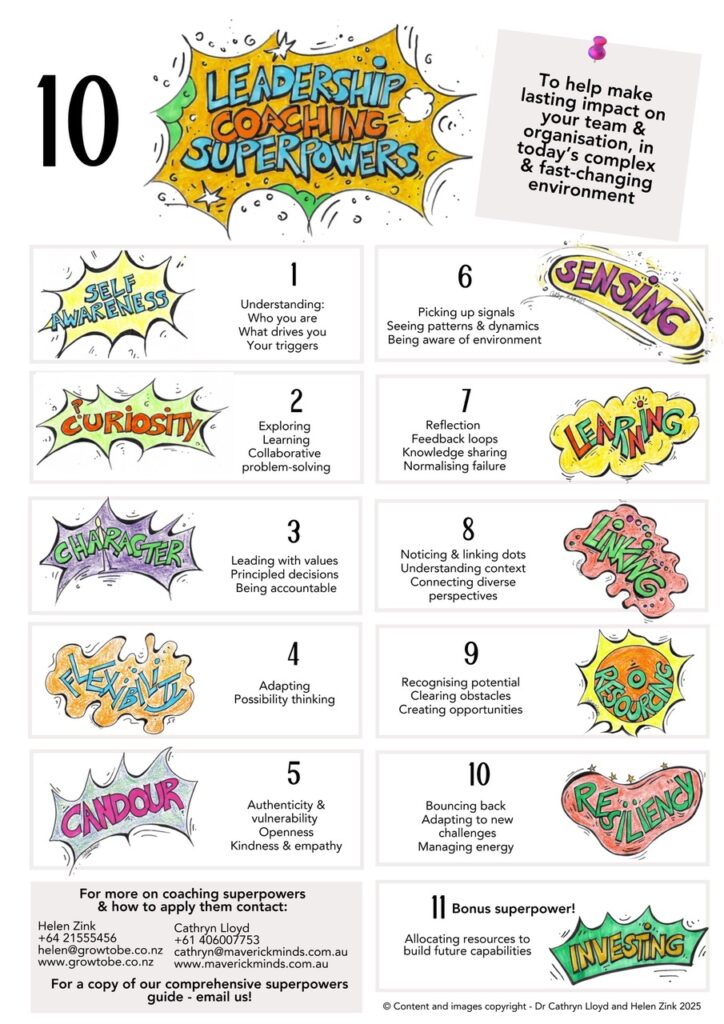 Drawing on our deep experience coaching leaders and teams through today’s complex challenges, my colleague Helen Zink and I have identified some key strengths we call Leadership Coaching Superpowers.