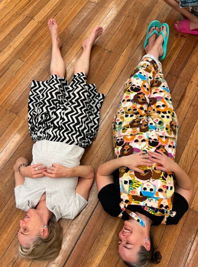 Fun and games – Erin and Cathryn laying down on the job