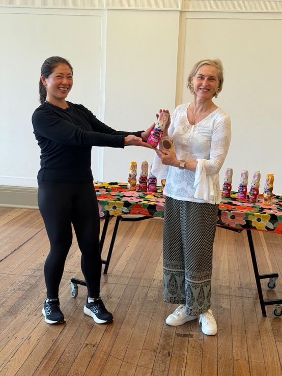 Susan presenting Cathryn with the Improv Bunny Oscar